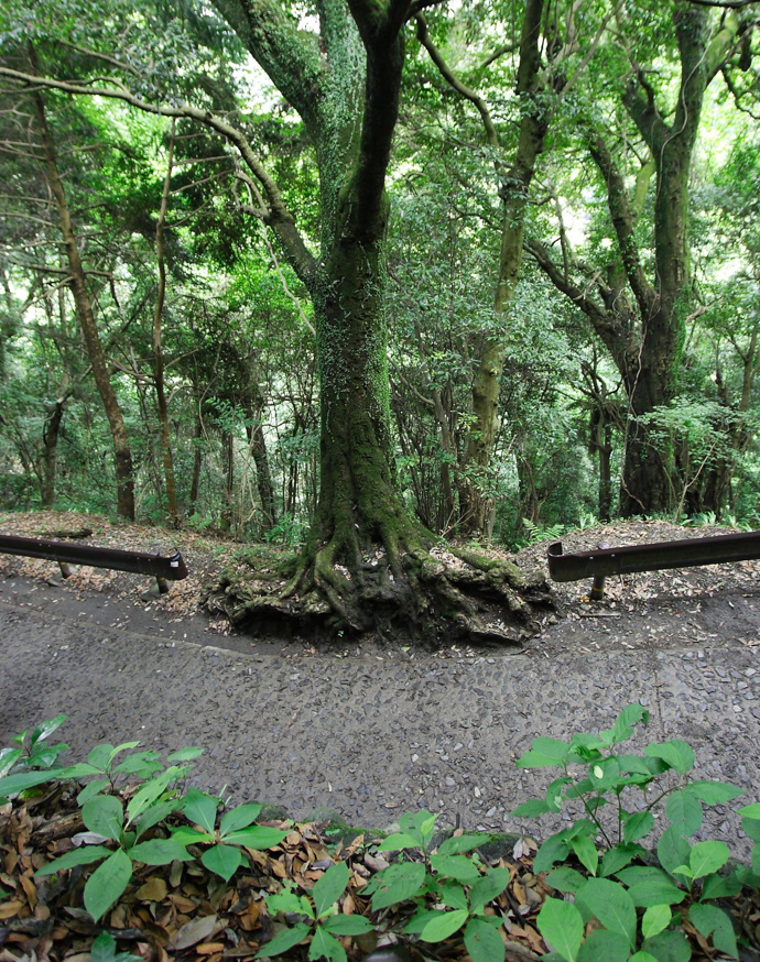 1号路は薬王院の表参道。薬王院までは舗装路の林道。リフトの山上駅まではかなりの急坂である。